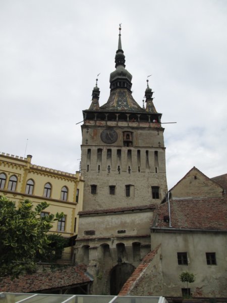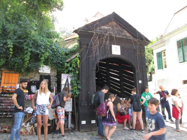 Ezután nekiindultunk, hogy bejárjuk a várost. Az óratoronyba 15 lejért tudunk felmenni. Közben a szinteken kiállítások is vannak, valamint az óra figurái is megtekinthetők egy kis ablakon, így érdemes figyelni.